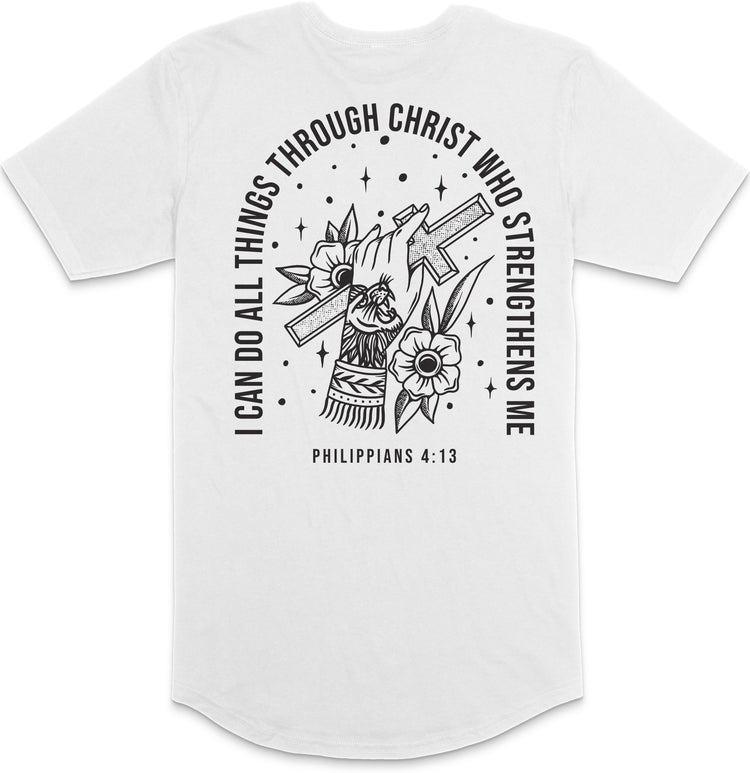 Philippians 4:13 Long Body T-Shirt (White & Black)