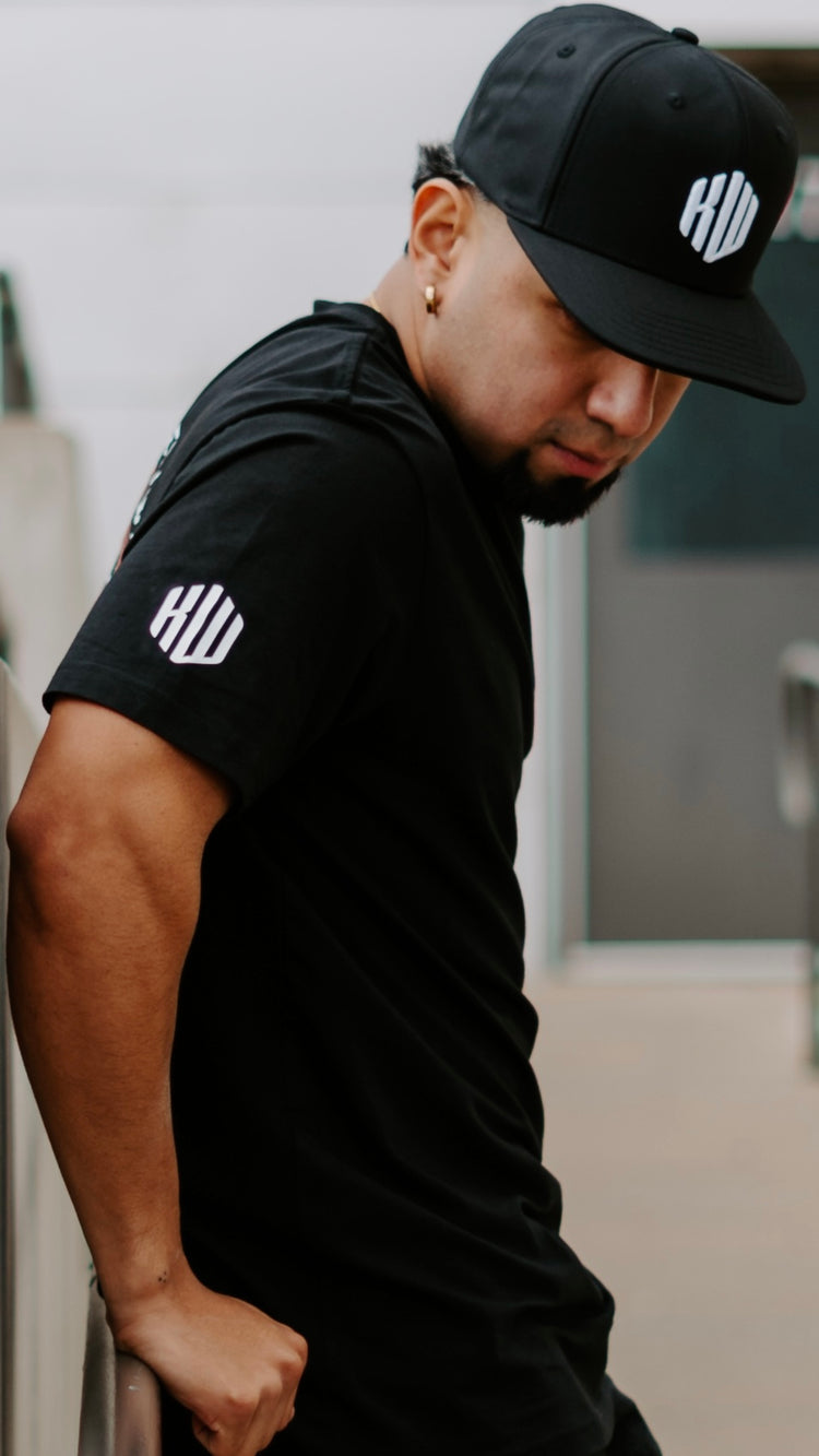 Our modern KW lettermark logo is on the right sleeve.