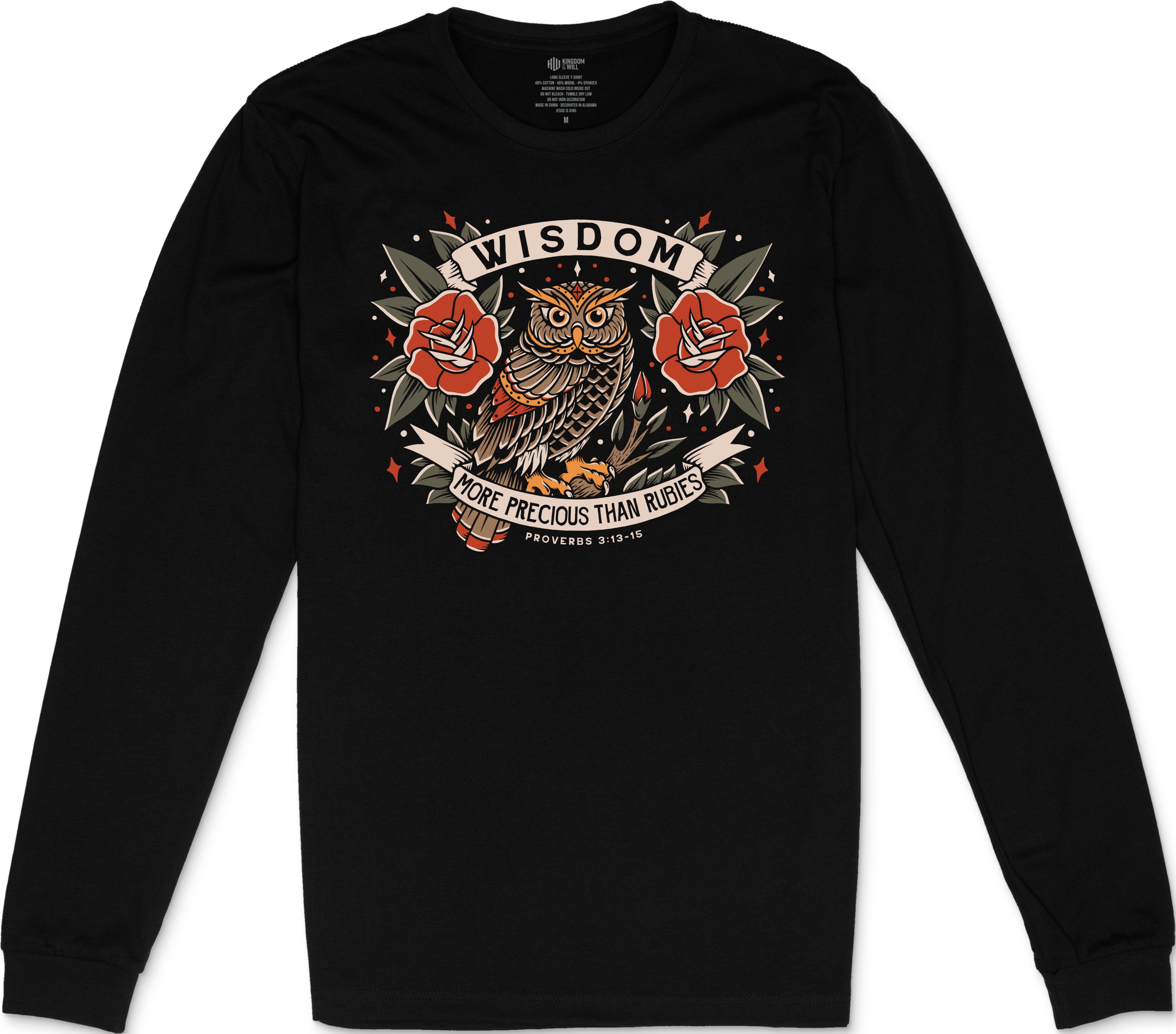 Wisdom Owl Long Sleeve T-Shirt (Black)